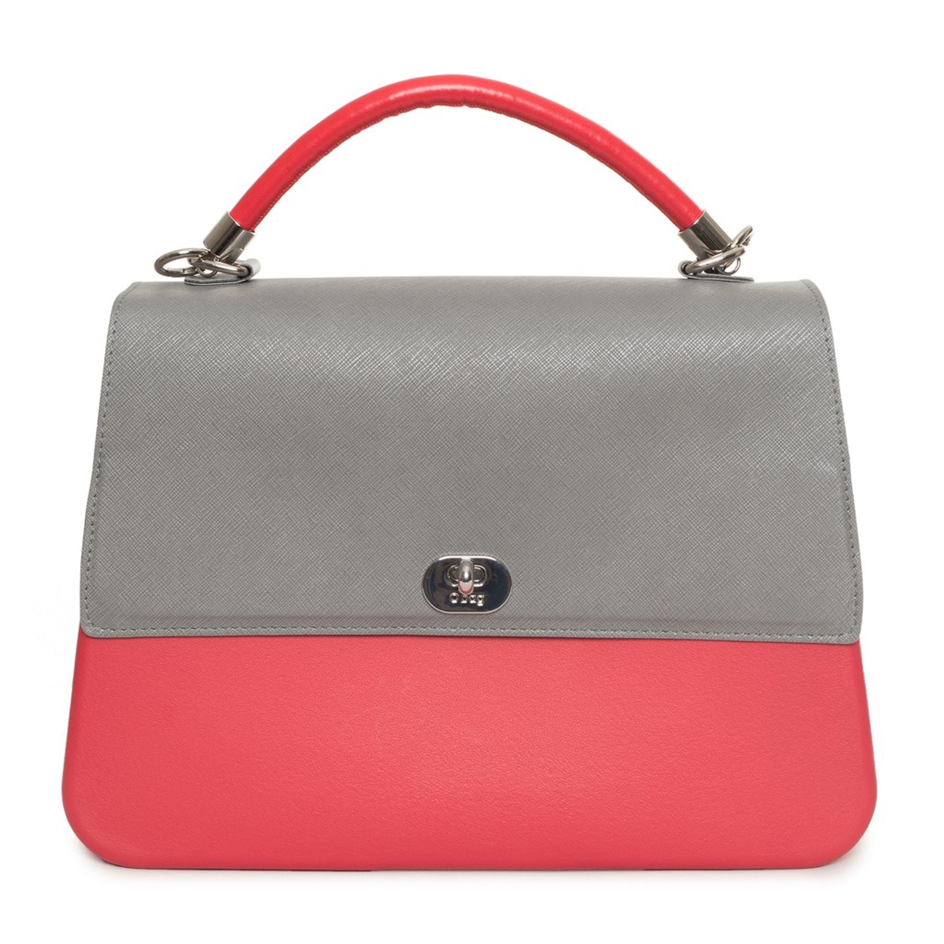 SAC À MAIN, POUR FEMMES, UNE POIGNEE, BICOLORE, AVEC LOGO, FERMETURE PAR CROCHET, POLYURETHANE